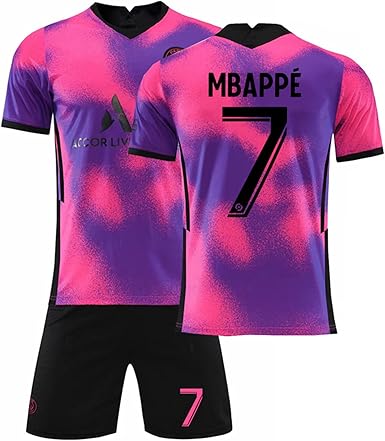 Amazon Com 2021 Season Paris Third 7 Mbappe Soccer Jersey Pink Purple Kids Shirt Shorts Set Clothing Shoes Jewelry
