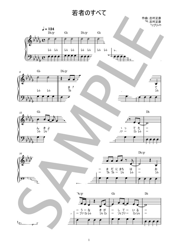 楽譜 若者のすべて フジファブリック ピアノ楽譜 歌詞ドレミ付き かんたん両手 初心者向き フジファブリック ピアノソロ 入門 Piascore 楽譜ストア